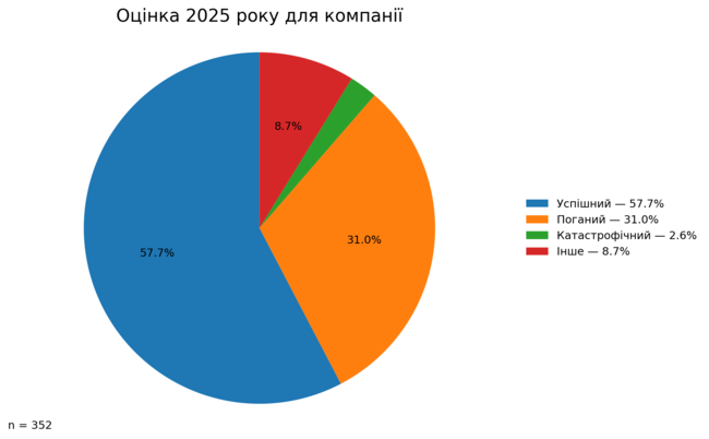 Загальна оцінка 2025 року виглядає стримано-позитивною: респонденти частіше називали рік успішним, ніж невдалим. Це важливо: попри зовнішні ризики, бізнес зберігає відчуття керованості ситуації.