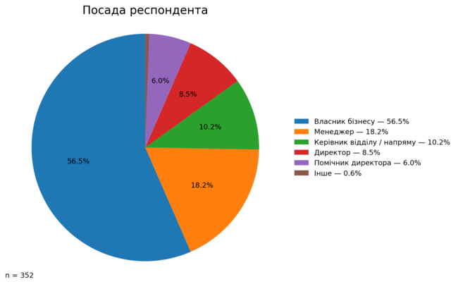 Показово, що анкети найчастіше заповнювали власники та перші особи, тобто відповіді відображають не локальну думку «по цеху», а оцінку року на рівні бізнесу.
