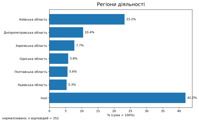 Більшість учасників ведуть локальний бізнес, що логічно: саме локальні компанії найшвидше відчувають зміну попиту, кадрові коливання та збої в інфраструктурі.