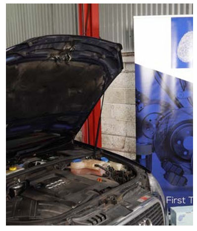 Транспортний засіб було доставлено в майстерню. Капот було відкрито, кришку двигуна було знято. Перевіривши, що запалювання вимкнено, акумулятор було від’єднано.
