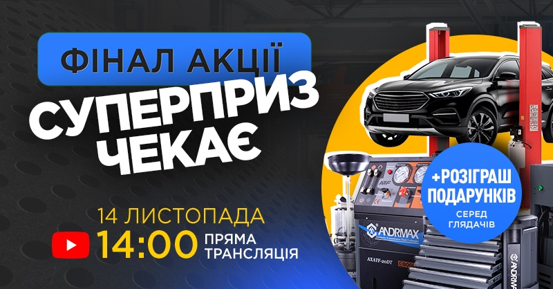 Саме під час прямого ефіру ми визначимо переможця головного суперпризу — набору обладнання для автосервісу, а також розіграємо п’ять цінних подарунків серед глядачів трансляції.