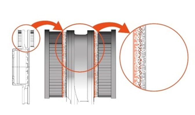 Фото. 2. Завдяки цільовому підбору матеріалів між гальмівним диском і колодкою утворюється стабільний фрикційний шар -основа для стабільної ефективності гальмування, низького зносу та високого комфорту водіння.
