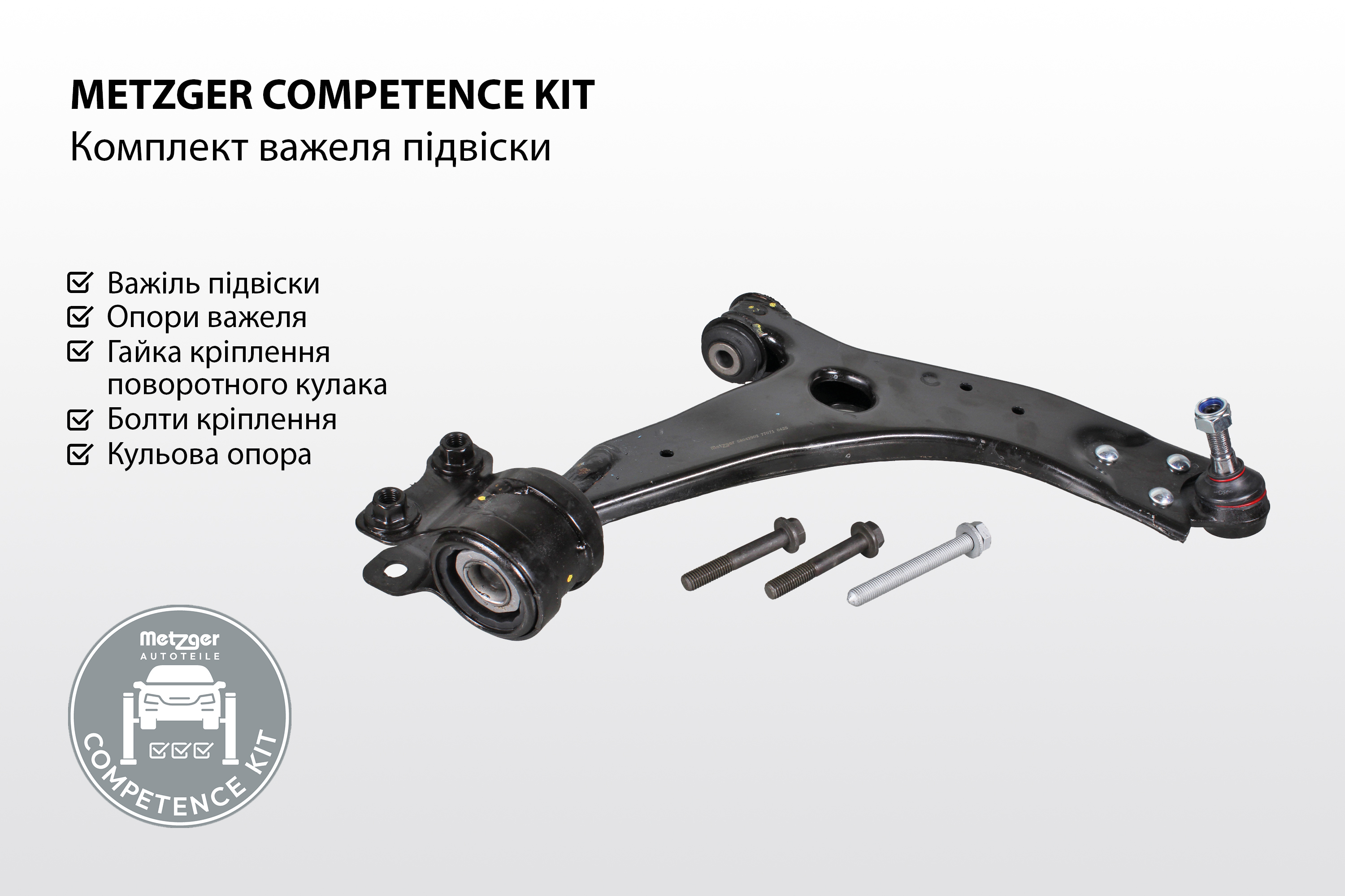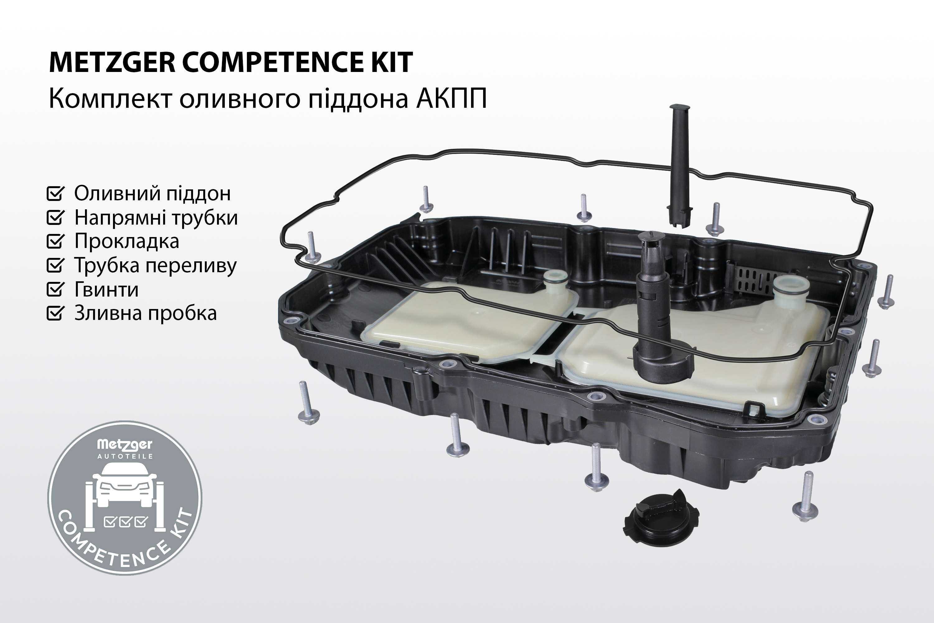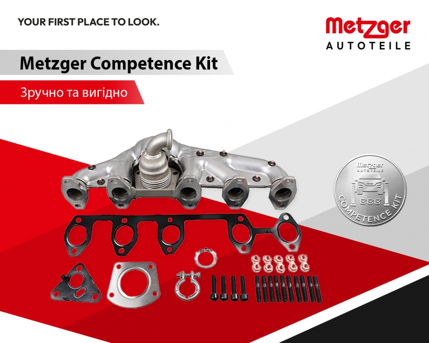 Монтуй без затримок: З новими комплектами Competence Kit компанія Metzger Autoteile започатковує новий рівень поставок комплектуючих. Понад 3000 позицій різних товарних груп містять не лише основну деталь, але й все необхідне для її монтажу: прокладки, гвинти, кліпси. Це допомагає уникнути додаткових витрат, затримок в ремонті і гарантує, що запчастина правильно підібрана, готова до монтажу одразу після розпаковування.