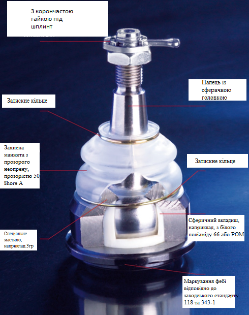Тому для кожного автомобіля висуваються свої вимоги до опор. Крім приєднувальних розмірів нормується кут відхилення пальця опори в різних напрямках, зносостійкість, рухливість на проворот і розгойдування, а також зусилля виривання і видавлювання пальця. На невелику частину кульової опори припадає майже вся вага автомобіля, а під час руху по нерівностях через неї передаються всі вібрації та ударні навантаження, саме тому до їхньої якості висуваються дуже високі вимоги.