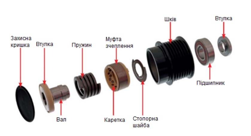 На малюнку нижче показані види ушкоджень, спричинені несправністю механізму вільного ходу генератора.
