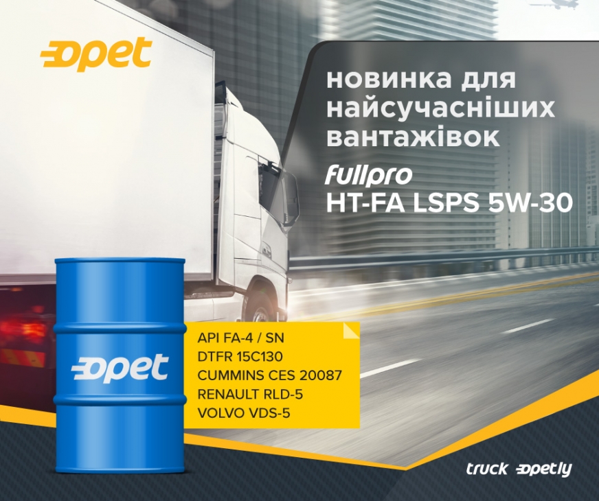 Нова моторна олива Opet Fullpro HT-FA LSPS 5W-30 покликана забезпечити безпрецедентний рівень економії пального разом із належним захистом двигунів, які розраховані на використання мастильного матеріалу із зниженою високотемпературною в’язкістю (HTHS 2.9 - 3.2 сП).