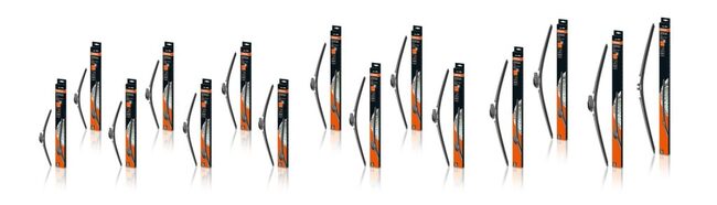 Безкаркасні щітки доступні у 15 варіантах (розміри 14–32"), мають аеродинамічний спойлер для високоефективної роботи на високих швидкостях та вставку з високовуглецевої сталі для стабільного контакту зі склом. Каркасні — 14 варіантів (13–28"), конструкція з нержавіючої сталі, підвищена притискна сила (завдяки продуманій вентильованій конструкції) та попередньо встановлений адаптер під п’ять найпоширеніших типів кріплення.