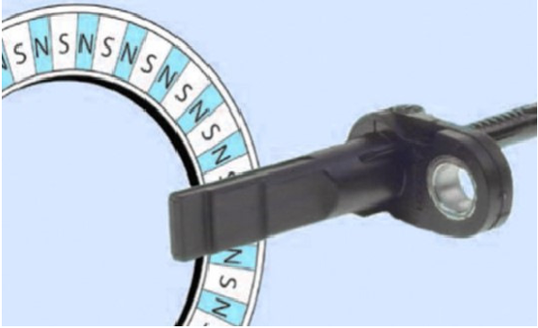 Деякі автомобілі оснащені підшипниками маточини, які передають сигнал швидкості за допомогою магнітного кільця на ущільненні. Елемент енкодера кріпиться до опорного кільця, яке зазвичай виготовляється із листової сталі. Цей елемент взаємно намагнічується під час виробництва. Під час руху транспортного засобу відбувається обертання намагніченого елемента, датчик ABS зчитує зміну полюсів і подає сигнал в блок управління. У блоці управління даний сигнал обробляється та перетворюється у швидкість обертання колеса і передається у шину даних.