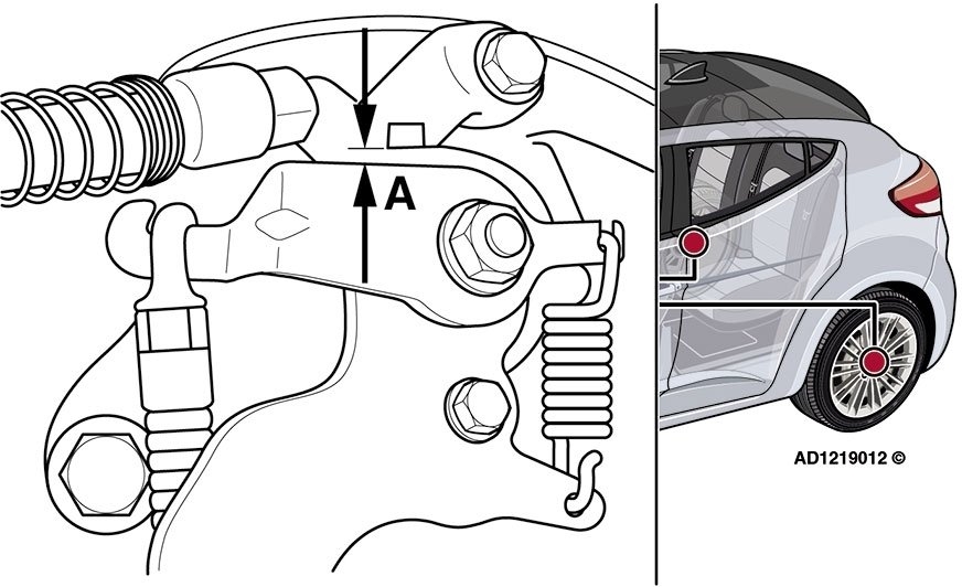 Відповідь: Раніше ми стикалися з цією несправністю, яка стосується моделей Veloster з автоматичною коробкою передач, виготовлених до 28.02.2012. Причиною є потрапляння води до важеля супорта заднього стоянкового гальма, що спричиняє корозію. Зніміть троси стоянкового гальма з обох важелів супорта стоянкового гальма. Перевірте розмір «А» на обох задніх гальмівних супортах (мал. 3). Якщо загальний розмір задніх супортів менше 3 мм, встановіть нову версію комплекту важелів супортів стоянкового гальма. Якщо загальний розмір обох задніх супортів перевищує 3 мм, встановіть нову версію задніх гальмівних супортів.