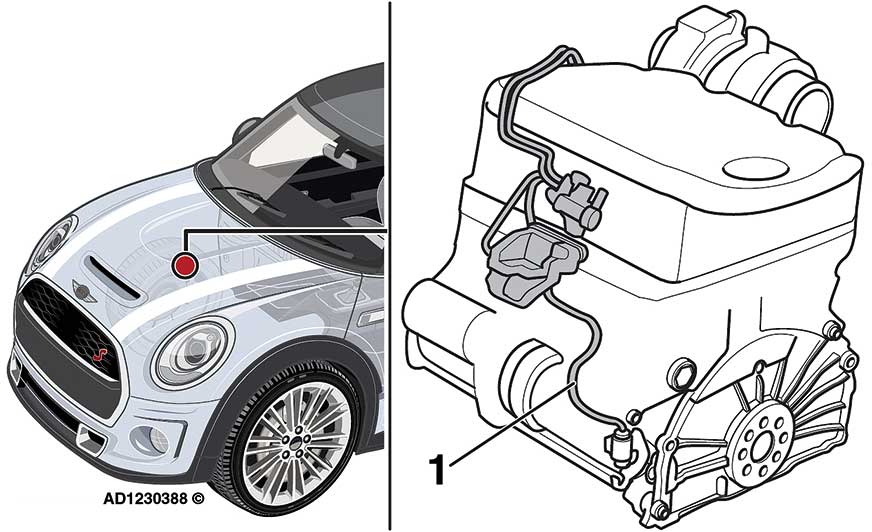 Відповідь: Так, описана несправність зустрічається в декількох моделях Mini з кодами двигуна B47 D20B і B47 C20B, випущених в період з 11.2017 по 09.2018. Причиною цього є зігнуті або затиснуті вакуумні шланги до клапана регулювання тиску турбокомпресора та клапана рециркуляції відпрацьованих газів. Перевірте вакуумні шланги на прохідність (рис. 2.1). За необхідності замініть їх. Видаліть коди несправностей і виконайте пробну поїздку, щоб перевірити, чи проблема вирішена.