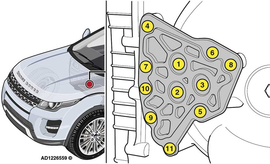 Відповідь: Ми вже стикалися з описаною несправністю, яка стосується моделей Range Rover Evoque з кодом коробки передач 9HP48, виготовлених після 2014 року. Витік спричинений дефектною конструкцією ущільнення оливних каналів коробки передач. Зніміть ущільнення та болти кріплення плити оливних каналів трансмісії. Ретельно очистіть всі притискні поверхні. Встановіть нову версію ущільнення пластини оливних каналів коробки передач. Знову встановіть пластину оливних каналів за допомогою нових болтів кріплення і затягніть їх з відповідним моментом затягування (10 Нм). Зверніть увагу на порядок затягування болтів кріплення (фото 3). При необхідності долийте трансмісійну оливу в коробку передач. Після завершення ремонту виконайте пробну поїздку, щоб перевірити, чи усунена несправність.