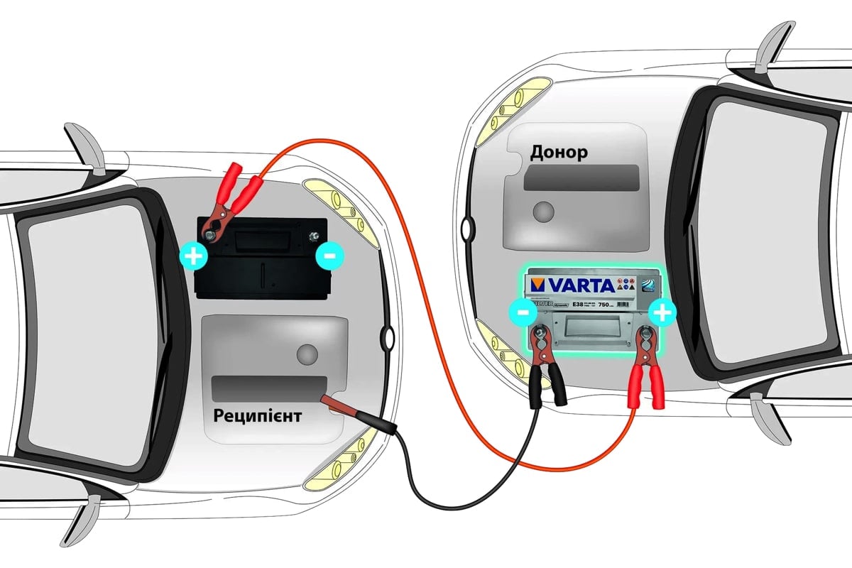 Важливо, щоб автомобіль-донор мав більш потужний акумулятор. Тип палива — бензин чи дизель — значення не має; головне, щоб акумулятор був потужнішим.