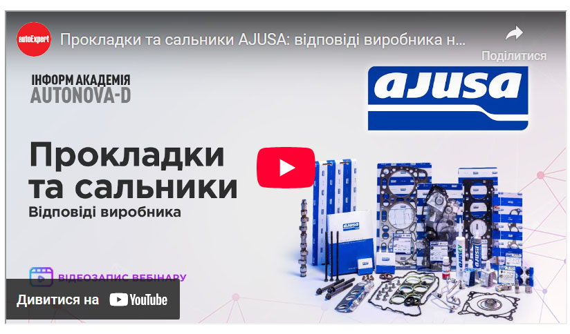 Наприкінці грудня АвтоНова-Д у межах Інформ-Академії, за підтримки журналу autoExpert, провела професійний вебінар, присвячений продукції іспанського бренду AJUSA — виробника прокладок, сальників та деталей клапанного механізму OE-рівня.