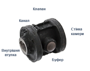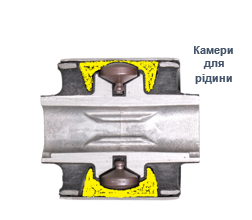 Гідравлічні сайлентблоки – це сайлентблоки заповнені гідравлічною рідиною, вони являють собою складні інженерні розробки. В такому сайлентблоці (Мал.2) може бути кілька камер, заповнених гідралічною рідиною та з кількома гідравлічними каналами різного перерізу.