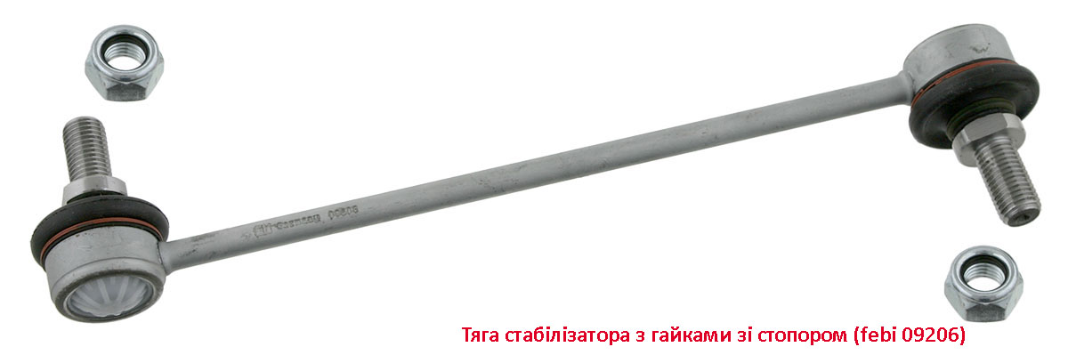 Зазвичай тяга стабілізатора обладнана кульовими з‘єднаннями, які захищені гумовими пильовиками від бризків води та зовнішнього впливу. Вони також змащені спеціальною змазкою, щоб максимально зменшити тертя під час руху.