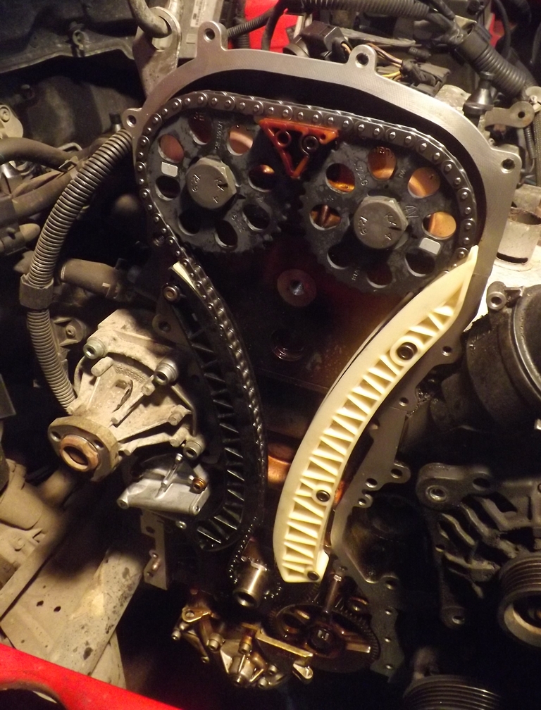 Був встановлений інструмент для фіксації колінчастого валу, але оскільки розподільні вали були невирівняні, інструмент не вдалося встановити одразу, як це буває зазвичай, коли ланцюг не перескочив.