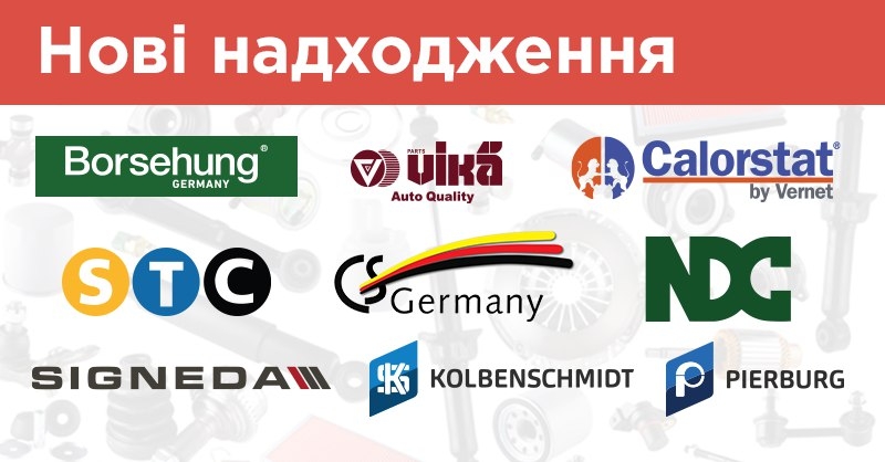 На склади АвтоНова-Д надійшла нова партія автозапчастин обсягом понад 3 500 найменувань. До поставки увійшла продукція брендів BORSEHUNG (Німеччина), CALORSTAT by Vernet (Франція), CS GERMANY (Німеччина), Kolbenschmidt (Німеччина), NDC (Японія), Pierburg (Німеччина), SIGNEDA (Литва), STC (Іспанія) та VIKA (КНР). Асортимент охоплює ключові системи автомобіля — від електрики та охолодження до кузовних елементів і деталей для ремонту двигуна.