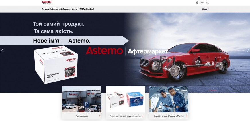 Тепер з асортиментом, технологіями та брендовою політикою Astemo та HÜCO можна ознайомитись українською на офіційних сторінках Astemo Aftermarket Germany GmbH (EMEA Region) – європейського підрозділу японської компанії Astemo, Ltd.