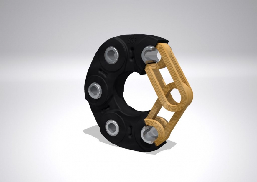 Властивості цього компонента повинні забезпечувати ефективне демпфірування піків крутного моменту в трансмісії і повинні компенсувати радіальне, осьове і кутове зміщення. Перевагами є жорсткість, можливість компенсації у всіх напрямках і стійкість до торсіонних навантажень, що забезпечує довгий термін служби. При заміні еластичної муфти (муфт) зверніть увагу на монтажні мітки, щоб забезпечити правильну роботу диска. Також рекомендується замінити болти відповідно до рекомендацій виробника. Переконайтеся, що всі болти правильно затягнуті у відповідності зі специфікаціями виробника автомобіля.